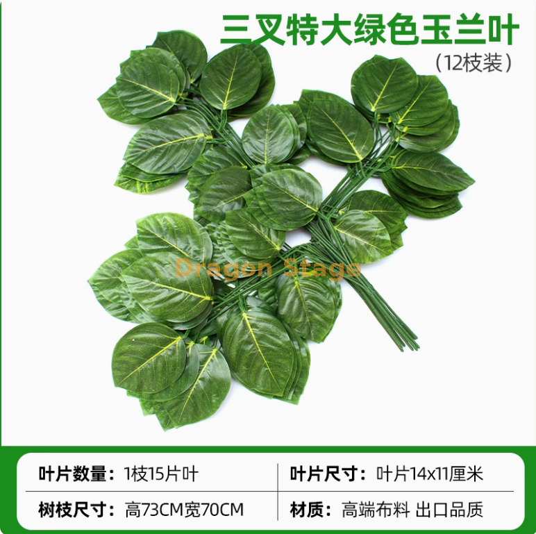 Folhas de árvore de banyan simuladas, folhas de bordo vermelho, folhas de ginkgo, shopping center, galhos falsos internos, verde escuro, verde tridente, folhas de magnólia, 12 galhos