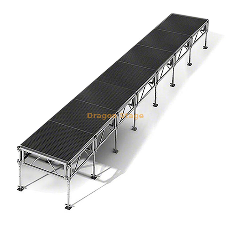 Construção Premium: Construído em liga de alumínio 6061-T6 de alta resistência, este palco é leve para fácil transporte, mas excepcionalmente forte, suportando cargas de alta capacidade para equipamentos e artistas.