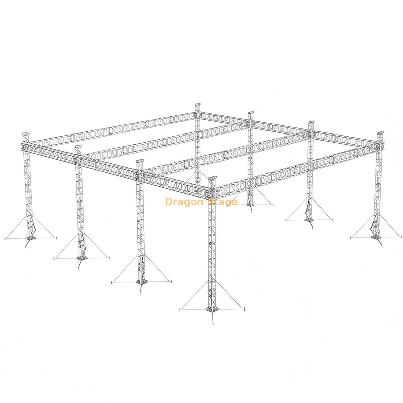 Projetada para construções de palco em grande escala, concertos ao ar livre e eventos industriais, a treliça de palco de alumínio com pilar de treliça para serviço pesado de alumínio indiano (120x100x40 pés, 8 pernas) combina engenharia robusta com flexibilidade modular. Fabricado a partir de ligas de alumínio de qualidade aeroespacial premium, este sistema de treliça oferece excepcional capacidade de carga, estabilidade e adaptabilidade para necessidades complexas de preparação.
